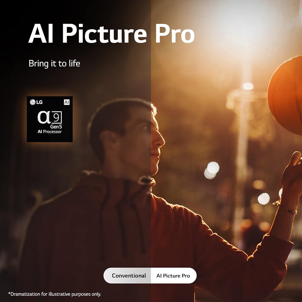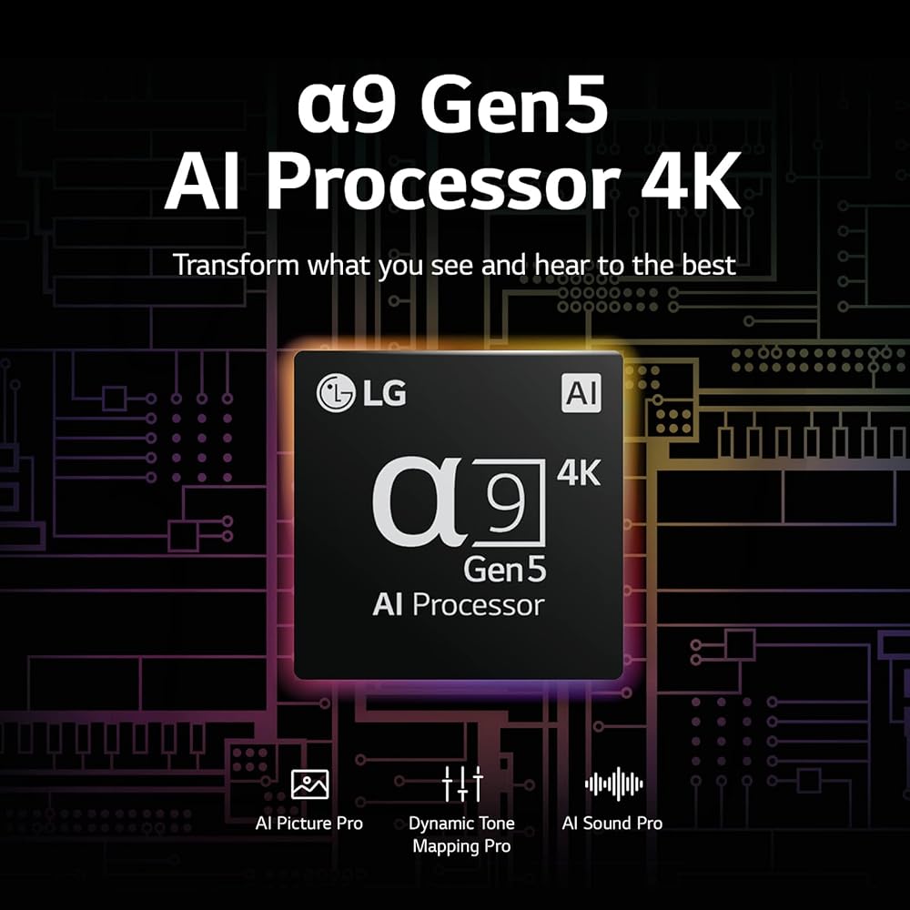 A9 GEN5 AI PROCESSOR 4K: Make the impossible possible with our latest a9 Gen5 AI Processor 4K, engineered exclusively for LG OLED to automatically adjust your settings to improve picture and sound qualities based on whatever you're watching