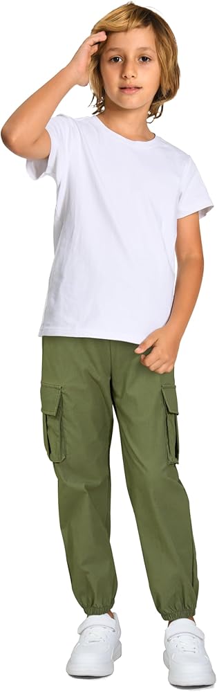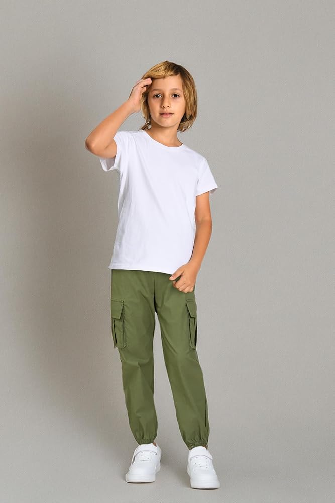 Cotton Material: The Unisex kid cargo made for Soft breathable fabric elastic cuffs for casual comfort, suitable for all seasons