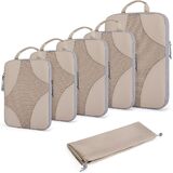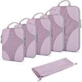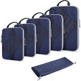 6 set compression packing cubes for travel, using the compression zipper in the middle to compress, which can effectively save the space of the suitcase. Lightweight and durable is also one of BAGSMART travel packing organizers' greatest features. Great for when you want to minimize weight as much as possible and save space within your suitcase. These travel essential packing cubes fit suitcases of all sizes. You can use these suitcase organizers for home storage or travel