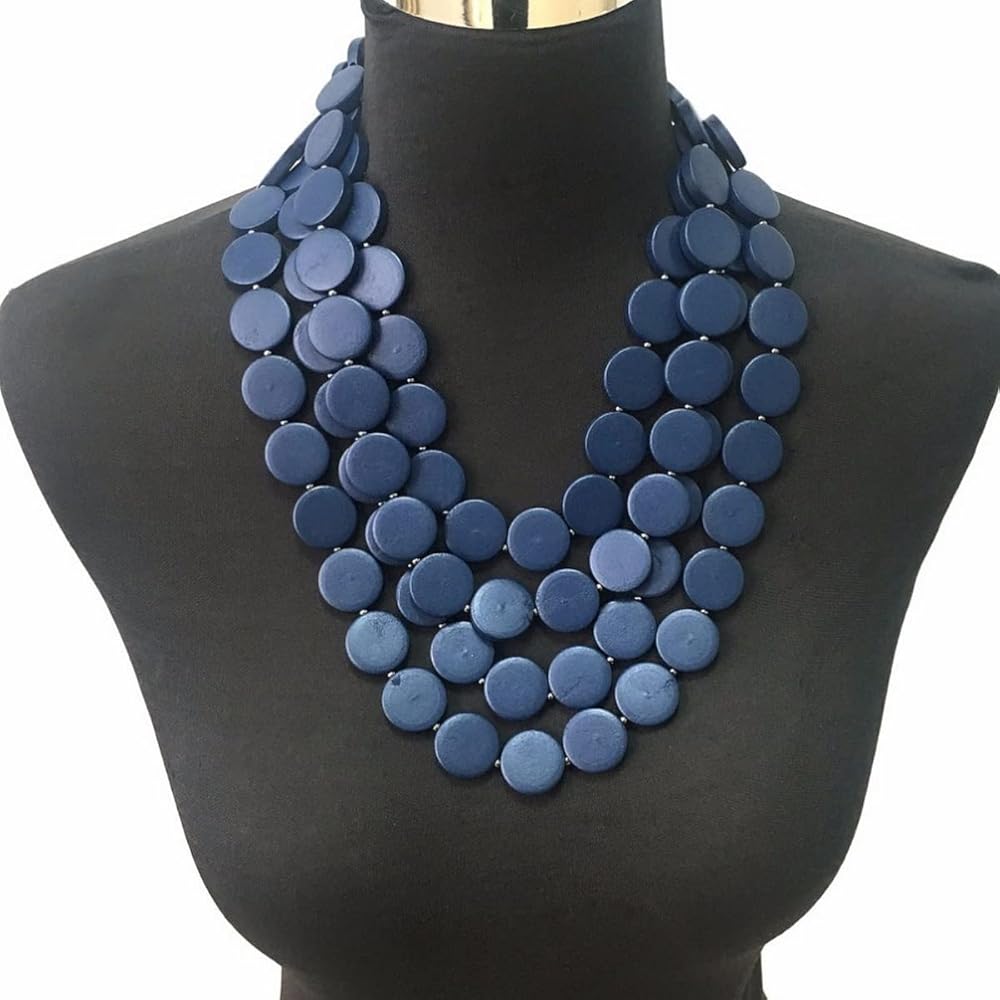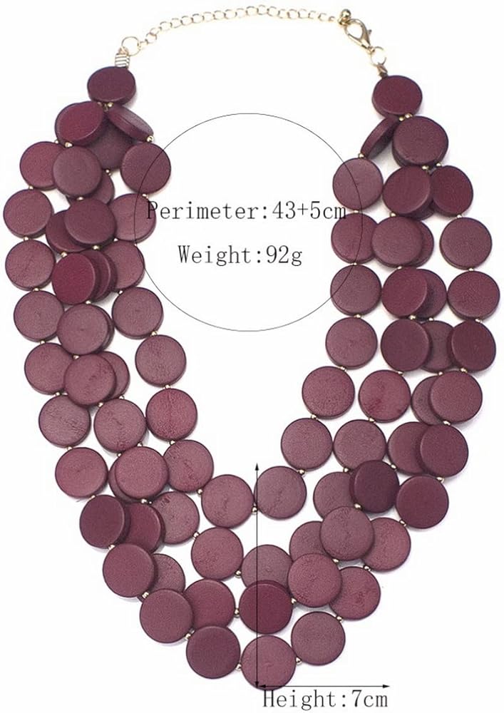 Material Wooden beads, statement African jewelry. Rich color matching, thick bib necklace with a variety of clothing. Make you particularly eye-catching. Hand-made, environmentally friendly materials and exquisite craftsmanship. The thick bib necklace uses high-quality weaving technology to connect wooden beads in series.