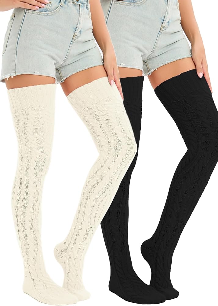One-Size Design: The total length of these warm leg socks is 84cm/33.1in, the length from toe to heel is 22cm/8.7in, and the length from heel to thigh is 62cm/24.4in. The great elasticity makes our socks fit most women.