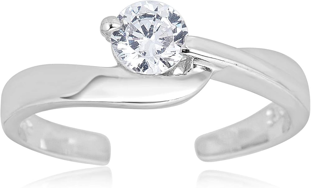 Crafted in 925 Sterling Silver, this solitaire toe ring features a single Simulated Diamond Cubic Zirconia (CZ) placed at the center. This toe ring is adjustable and fits most people.