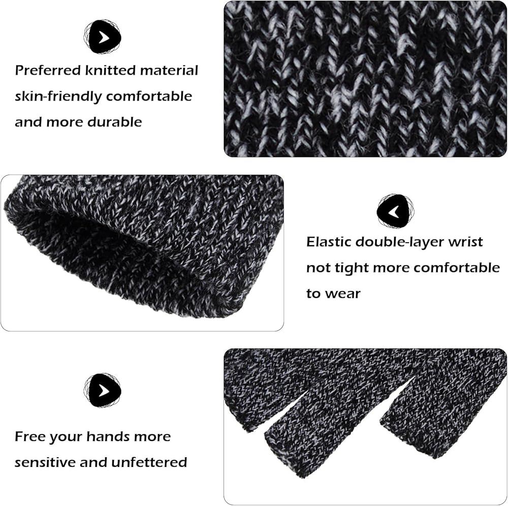 • Fingerless design: fingerless style keeps fingertips flexible and functional while keeping your hands warm; These knitted winter gloves allow you to access your phone without taking off your gloves, keeping your hands warm