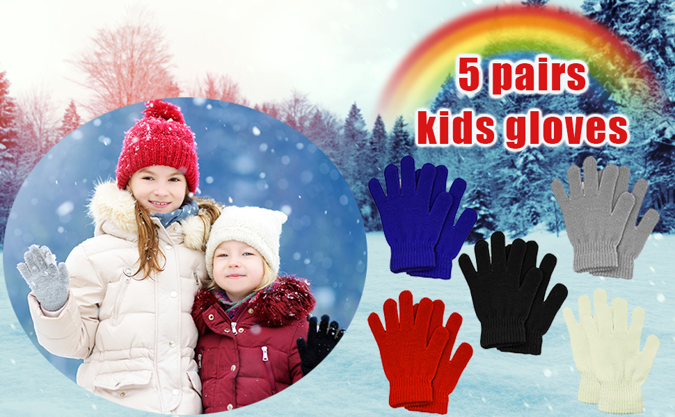 Package - 5 Pairs different color kids gloves in total, satisfied kids different clothes to match, 5 different color also can bring their different moods, also they can share gloves with their friends