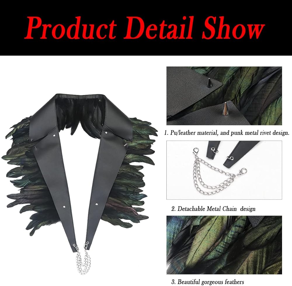 • 【Style】Joukavor goth feather capelet epaulettes is an outstanding accessory for Halloween costume, Vampire costume, Raven costume, Burning Man costume, Witch costume, Devil costume, etc.