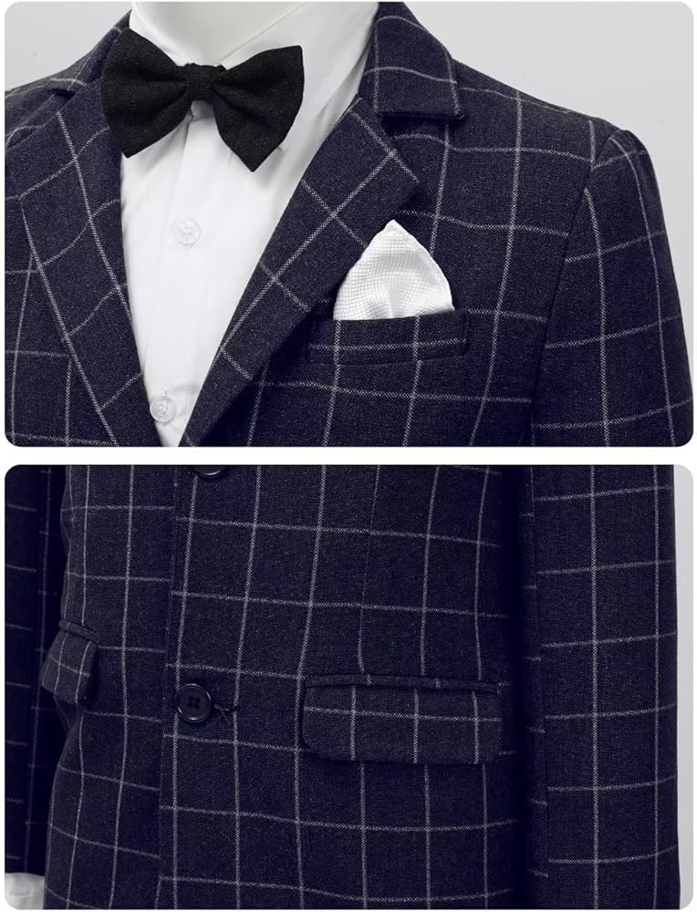 He will become the center of attention to the festivities in this versatile two-piece boys suit, featuring a thick plaid jacket and pants coordinated with pre-tied banded bow tie that blended in with the suit nicely. The boys suit having thick material, it will work out great for the weather.