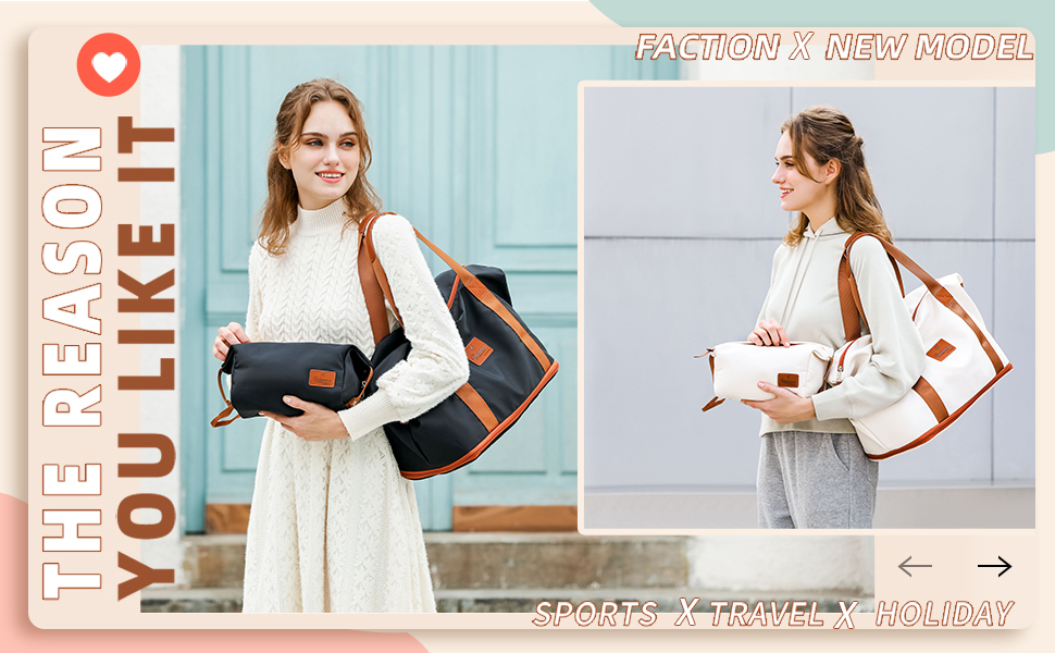 • ✅ Multi-purpose Design - We could call it is travel bag,and it is gym bag too.Our weekender bags for women are perfect reliable companion for your weekend. It is a great duffel bag for workout, overnight, sports activity, and many outdoor activities, etc.