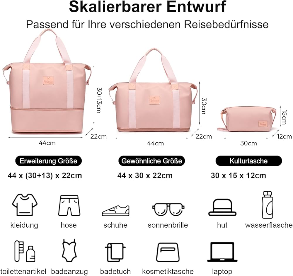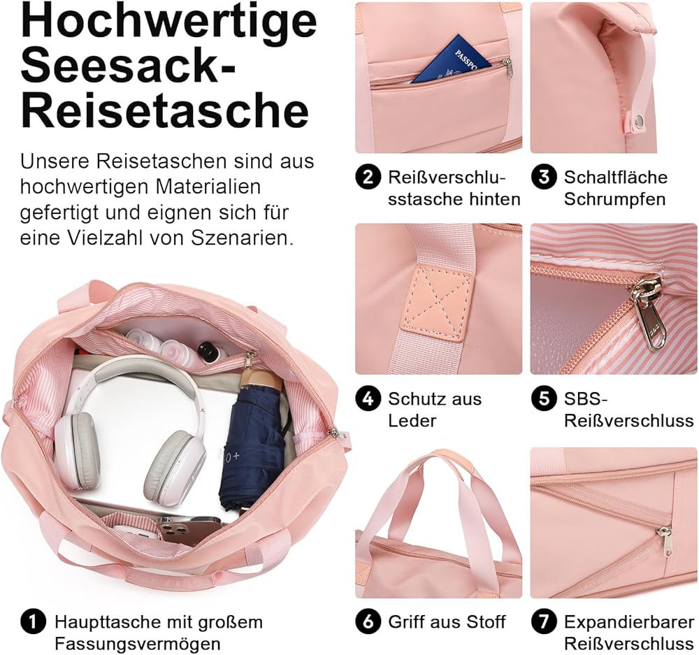 • ✅ Water Proof and Dry Wet Separated - The high density water resistant material of the travel bag can help you to separate dry items and wet items with large gym bag, if you have wet clothes or towel, you can put it in the weekender hostial bags for women.
