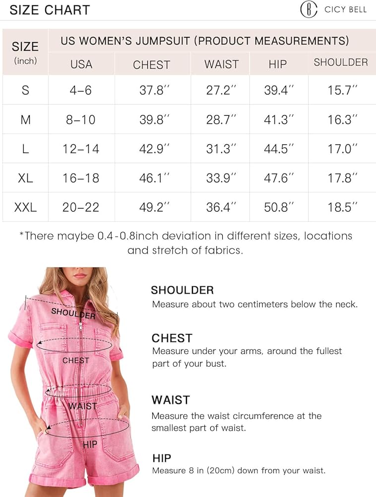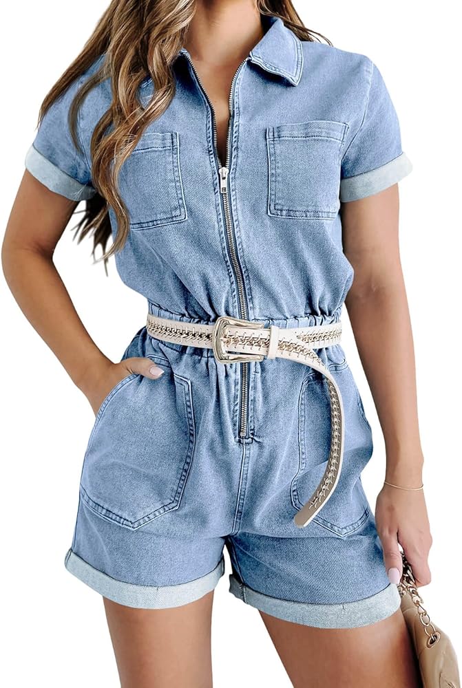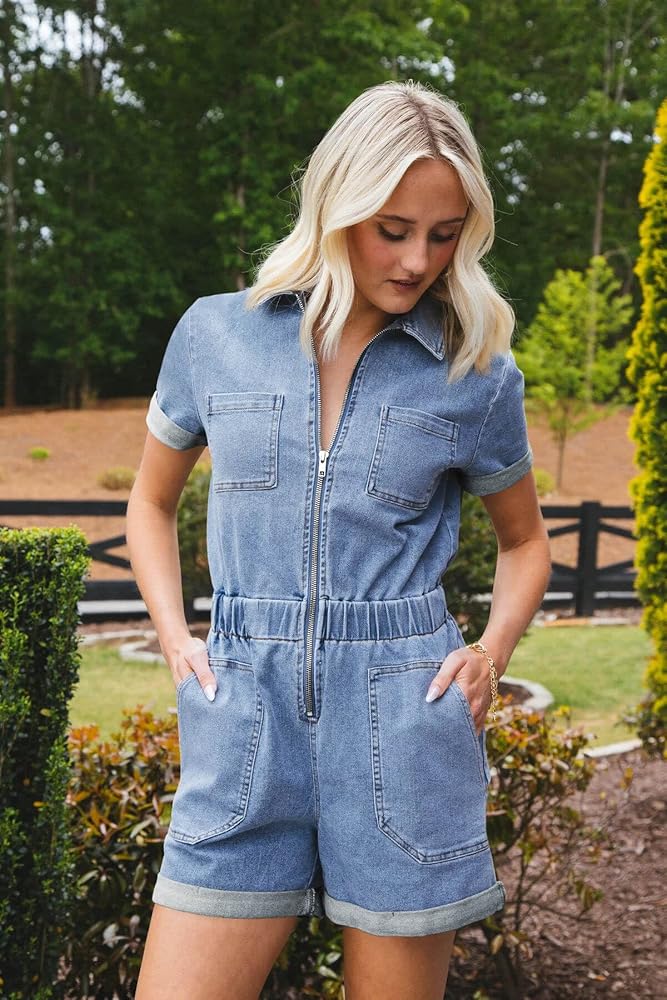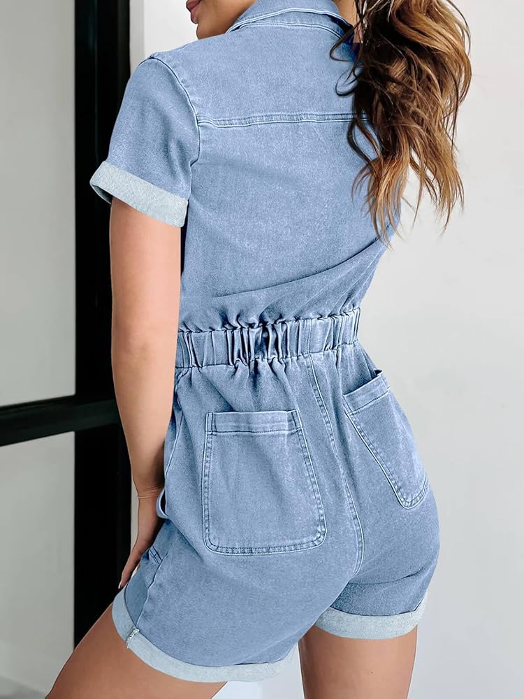 Stylish Design: Our women's denim rompers feature a trendy and fashionable design that is perfect for any season. The zipper closure adds a touch of modernity, while the elastic waist enhances your figure.