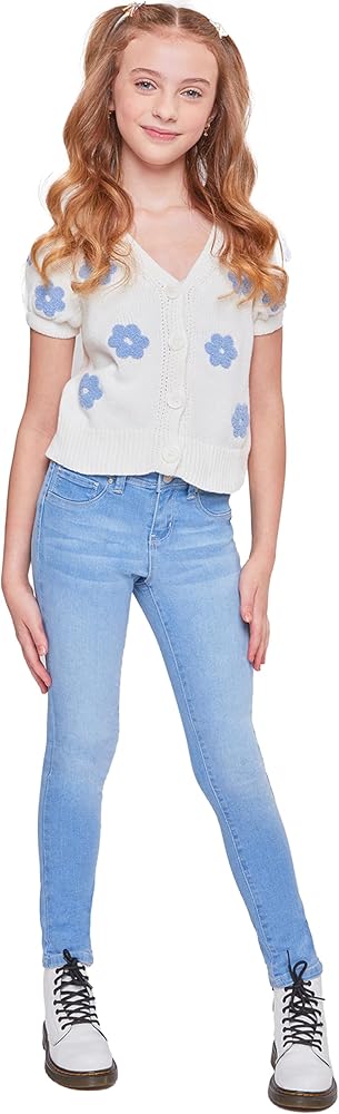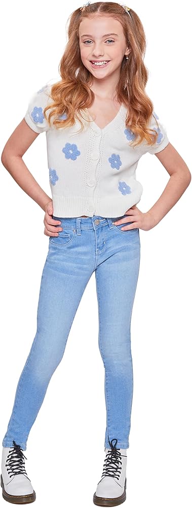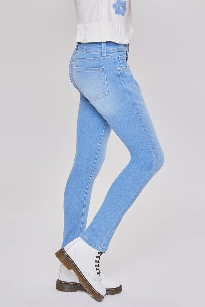 BEST FIT: These mid-waisted skinny jeans for pre-teenage girls are constructed with super stretchy denim so they move with her throughout the day for a super comfy fit she'll love.