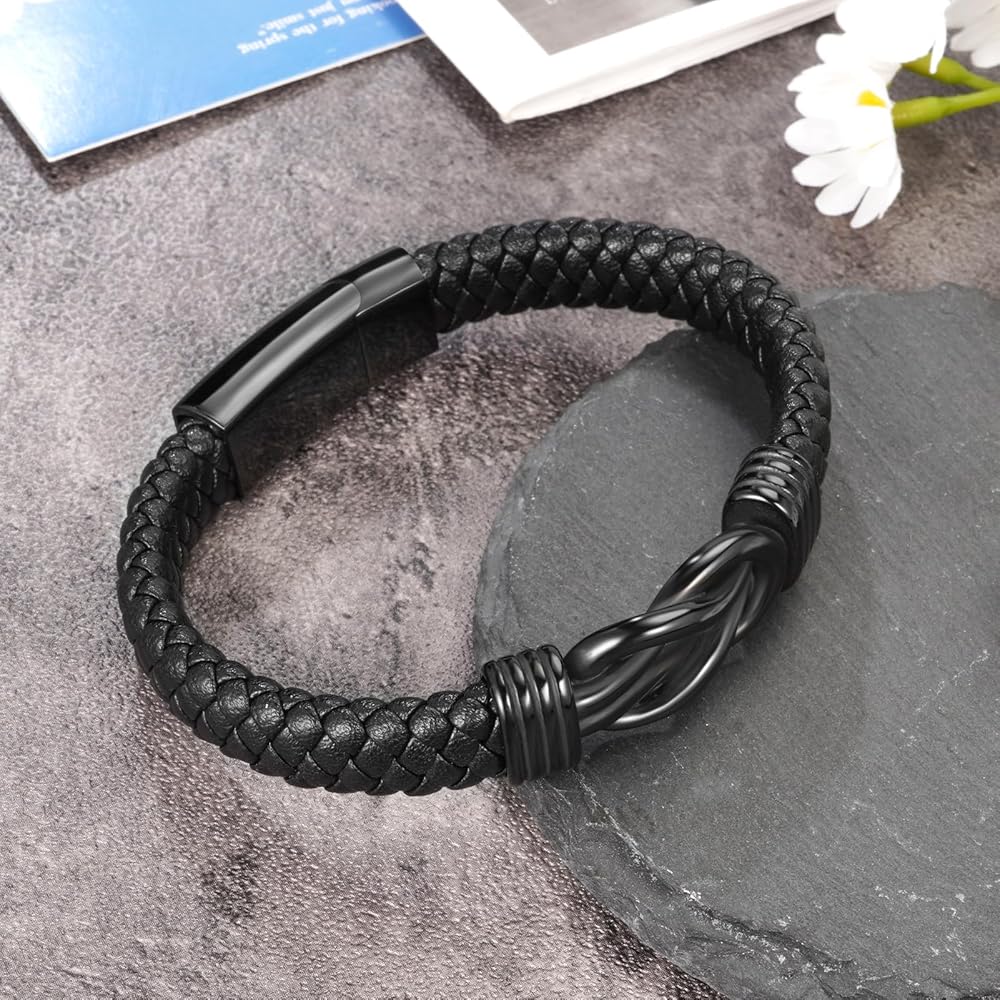 【Size & Material】With a length of 8.86 inches and a width of 0.51 inches, this bracelet offers a comfortable fit for most wrists. Crafted from high-quality stainless steel and genuine leather, it is not only comfortable but also durable, representing lasting memories that will never fade.