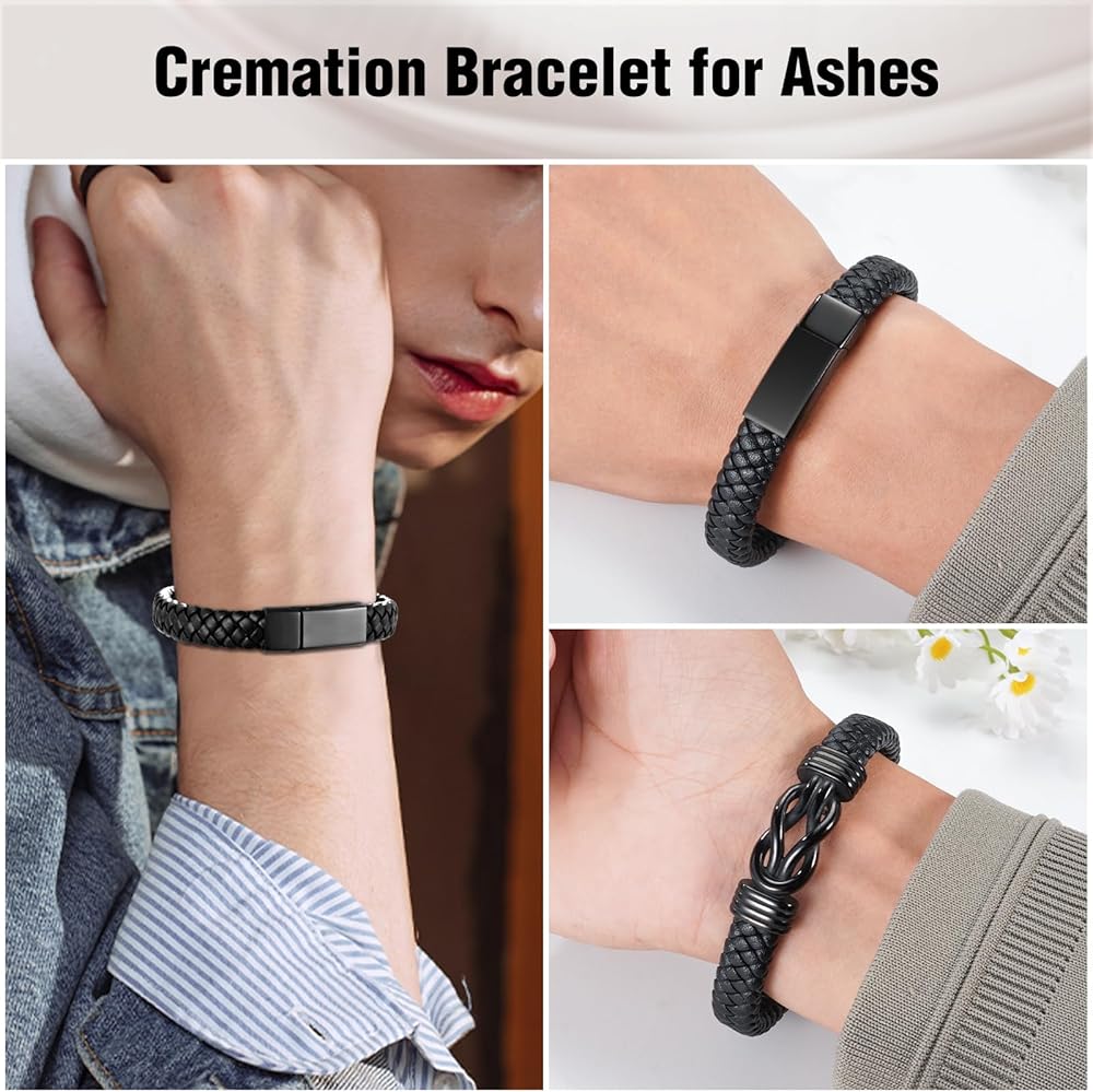abooxiu Urn Bracelet for Ashes Leather Cremation Bracelet for Human Ashes Stainless Steel Ash Bracelets Memorial Cremation Jewelry Keepsake Bangle for Men