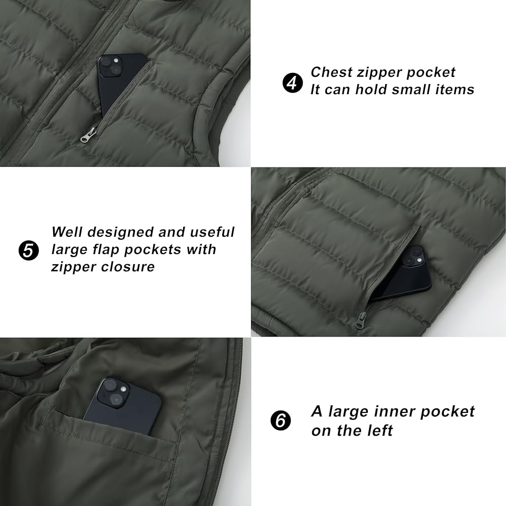 VERSATILE OCCASIONS - The puffer vest for men suitable for outdoor wear or casual wear: fishing, travel, hiking, safari, photography, working, shopping or any casual daily occasions. Perfect gift for your father, husband and boyfriend birthday, party activities, Christmas and so on
