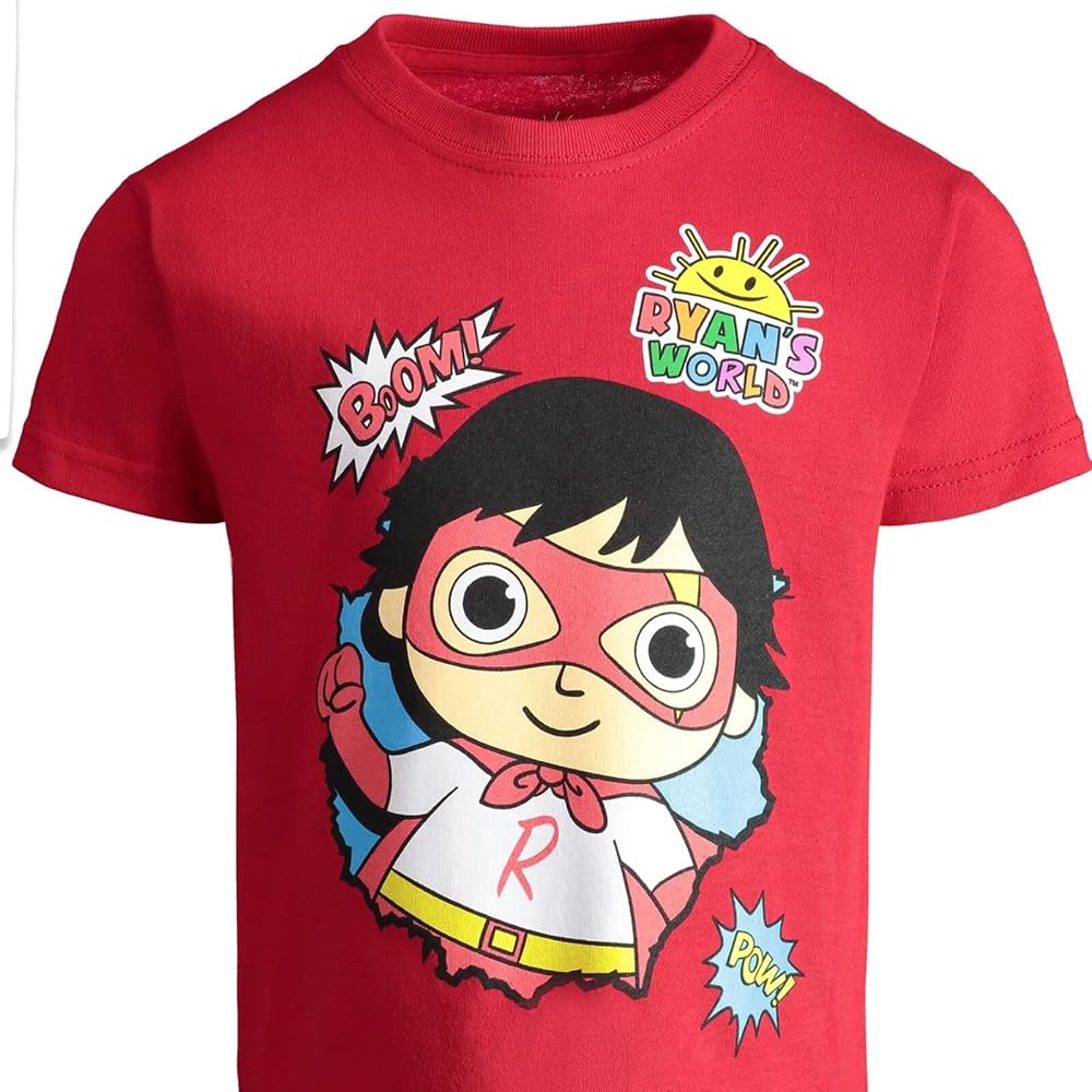 Jump into Ryan's World with this short sleeve graphic tee shirt! Join Ryan as he creates YouTube videos with Red Titan, Combo Panda, Big Gil, Alpha Lexa, Gus the Gummy Gator, Peck, Moe the Monster, and Shelldon the Baby Dinosaur. Watch as he unboxes toys, does lab experiments, and saves the day as the superhero Red Titan. Your child will love this Short Sleeve T-Shirt featuring their favorite Ryan's World characters!