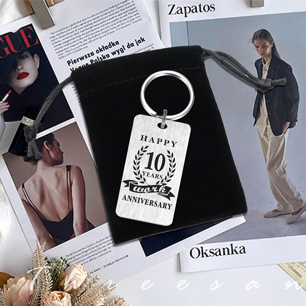 5 Years Work Anniversary Keychain - Unique 5 yr work anniversary gifts for employee coworker boss lady on their annual work anniversary, best way to show your gratitude and appreciation.