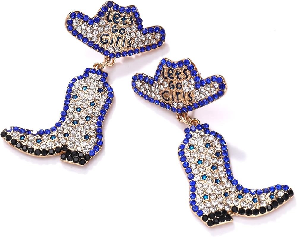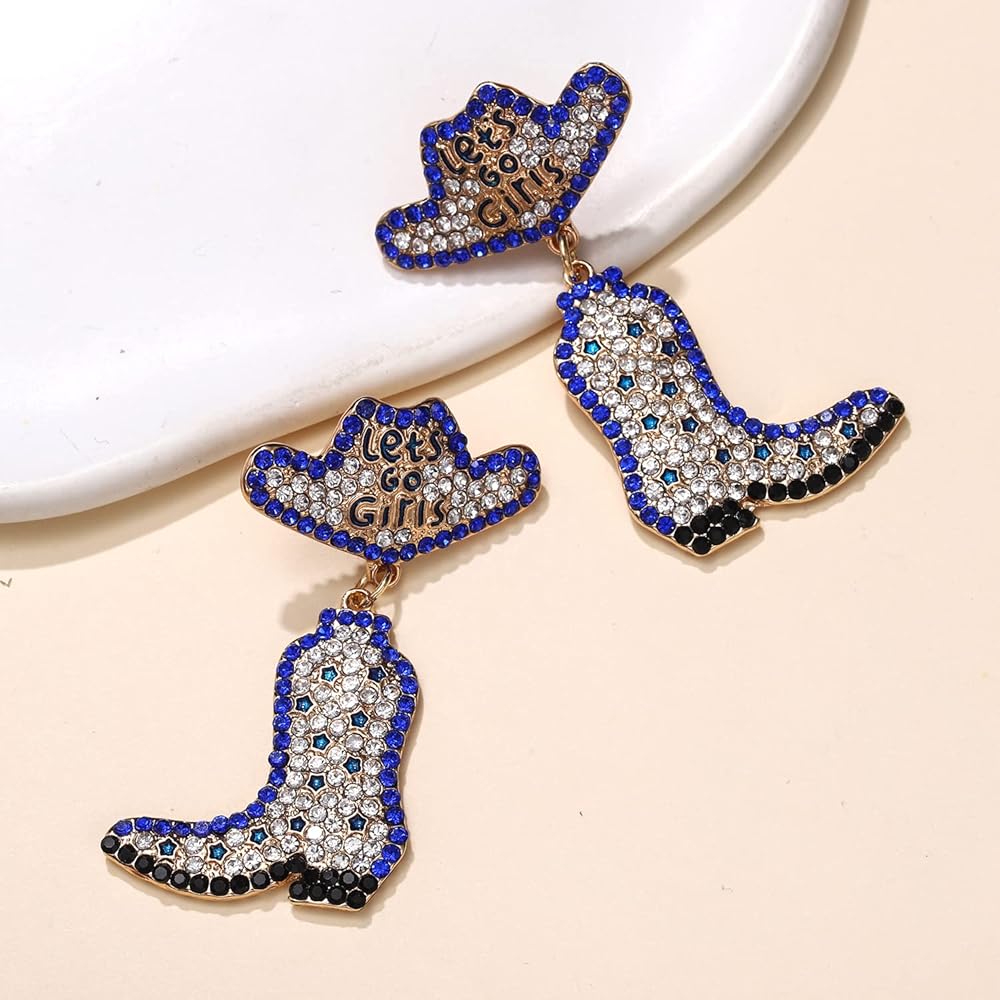 هدايا أزياء راعية البقر للنساء: هيا بنا يا فتيات! جريئة وممتعة، هذه الأقراط المتدلية المتلألئة واللامعة من حجر الراين مصممة لتجعلك مميزًا بين الآخرين. على شكل حذاء وقبعة رعاة البقر ومزينة بنجمة، هذه الأقراط اللطيفة المضادة للحساسية. رائعة للعروس لفتياتها. عيد الأم، هدايا عيد الميلاد، وهي تمثل أفضل الهدايا للمضيفات. هدية رائعة لوصيفات العروس، هدايا لحفلات العزوبية، ورائعة لتناول الغداء!!