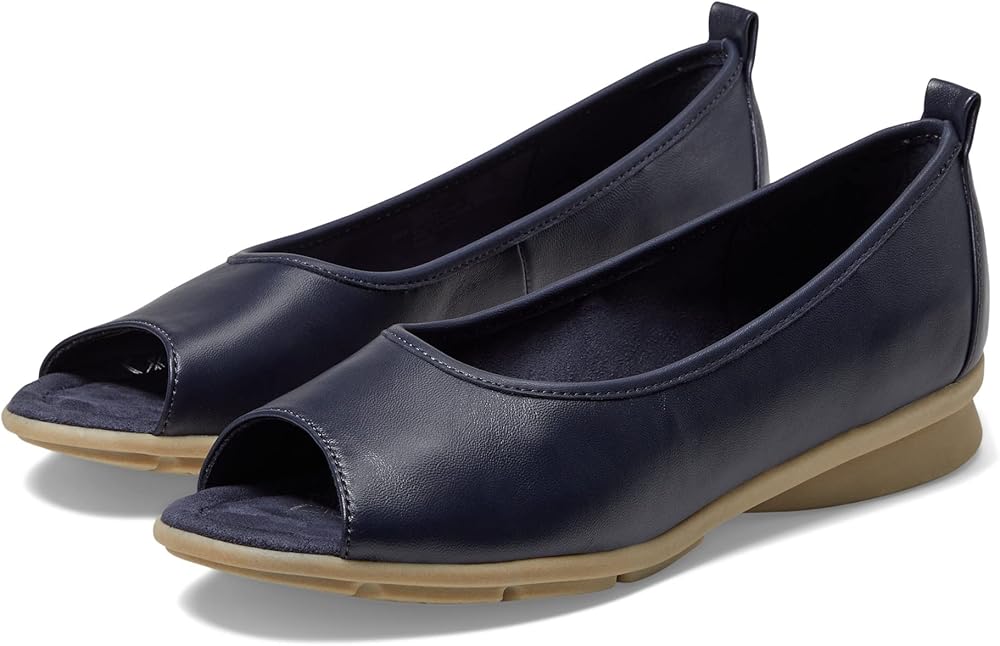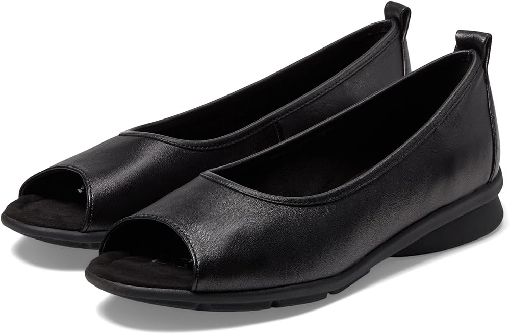 Adapt to your ever-changing environment in these Pratima peep-toed flats|Full-grain leather upper|Flexible, slip-resistant TPR outsole|Pillowtop memory foam footbed with arch support|Peep toe