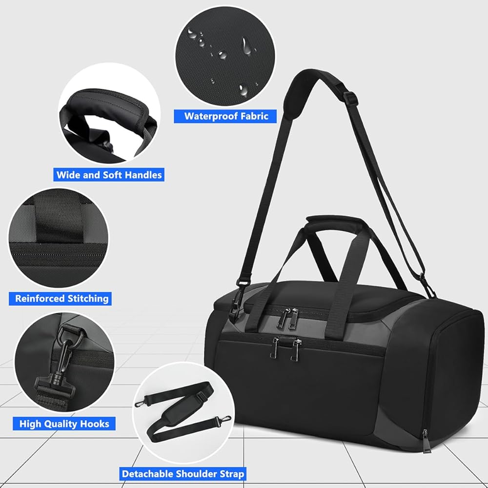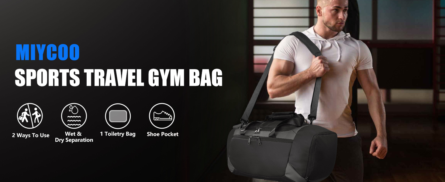 Gym Bag for Men Women, Sports Travel Duffel Bag with Shoes Compartment & Wet Pocket, Carry On Bag Weekender Overnight Crossbody Bag, Waterproof Gym Tote Bags - MIYCOO
