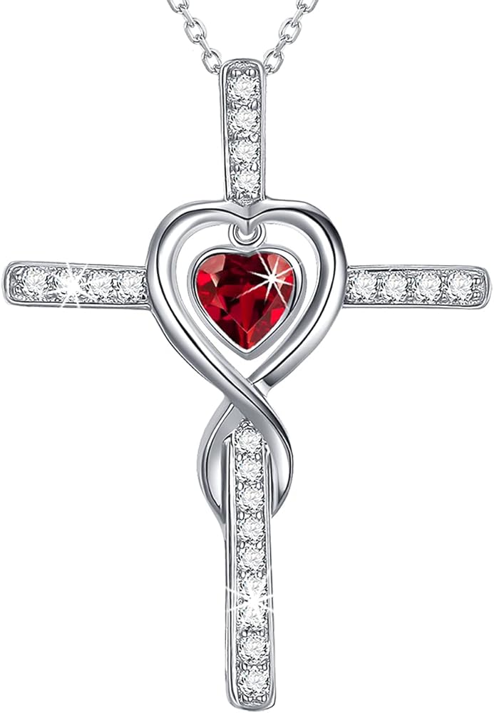 🎁 Garnet Necklace for Women 🎁 This Love Infinity Pendant setting with Heart-shaped Created Garnet . Both Pendant and Chain made of Solid Sterling Silver.