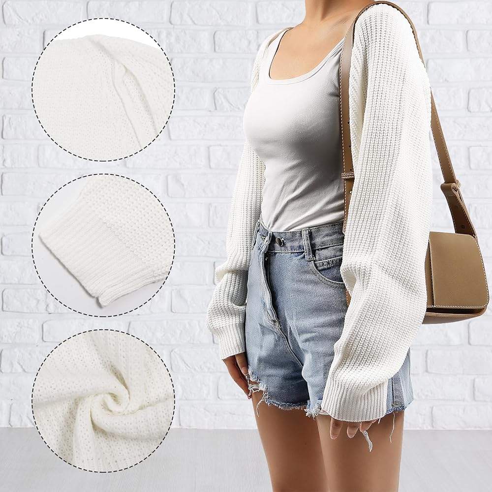 💋CARDIGAN COLOR&SIZE:Knitted shrug cardigan have three colors black/white/pink for choice. Two size M(US4-6), size L(US8-10). white elegant open front cardigan,sexy black knit crop outerwear, pink cute long sleeve shrug sweater.