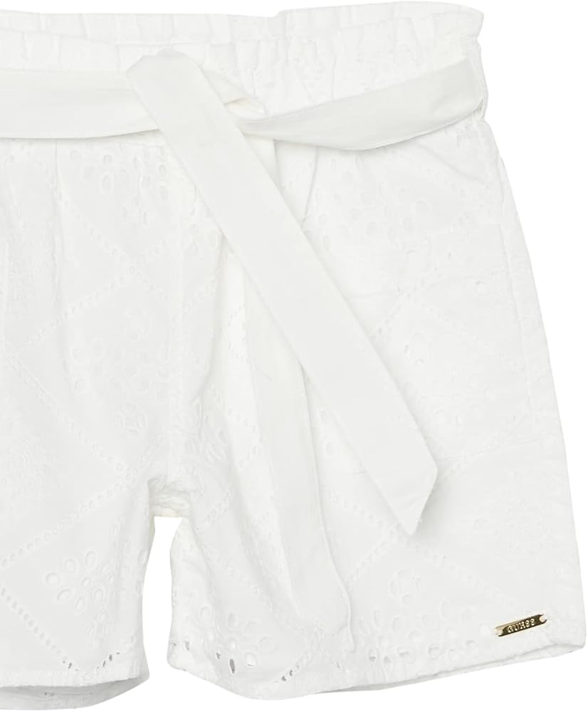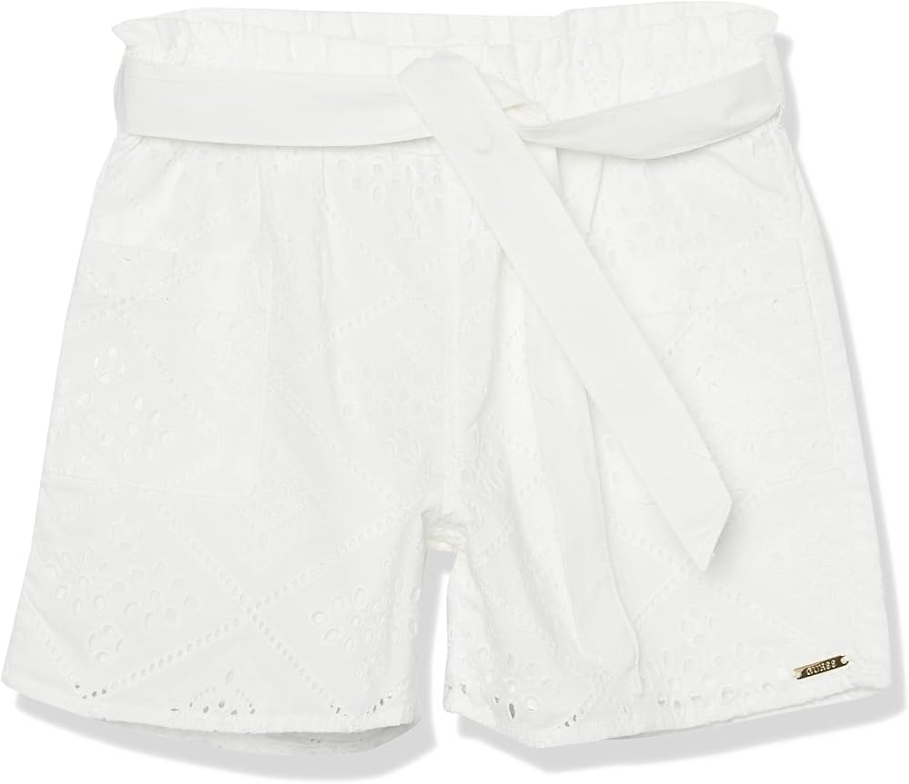 Add something new to their wardrobe with this pair of woven shorts featuring allover eyelet embroidery. Styled with front patch pockets and a paperbag waist with ribbon belt.