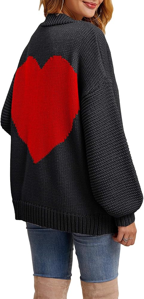 Feature: open front cardigan sweater, long sleeve, chunky slouchy knitted top, sweet love heart pattern, solid color, stretchable material, cute sweater jumper, baggy loose style.