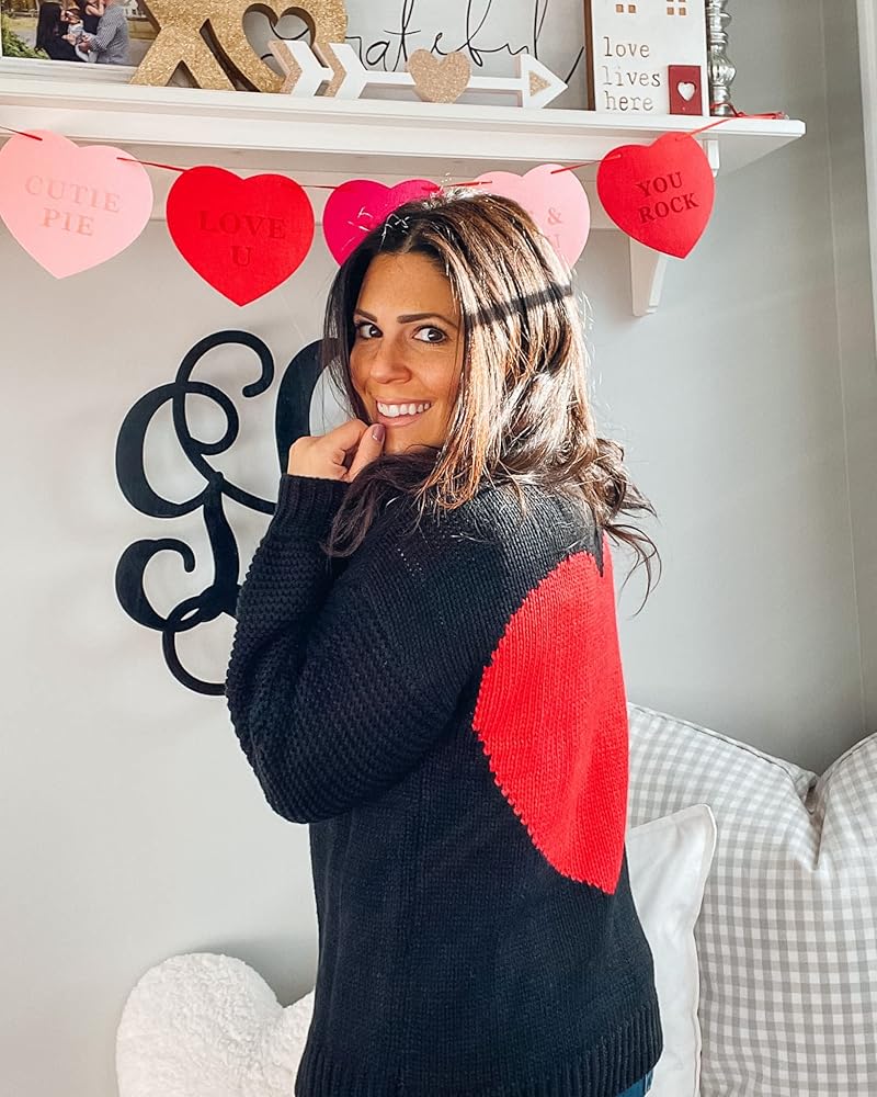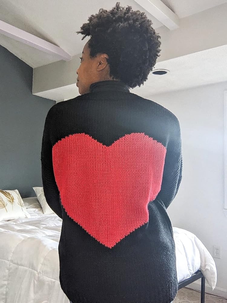 It's a super cute Heart pattern cardigan.The heart details are sewed on, nice stitching with soft touch. Styling with any leggings, skinny jeans, pencil pants, skirts or winter boots.