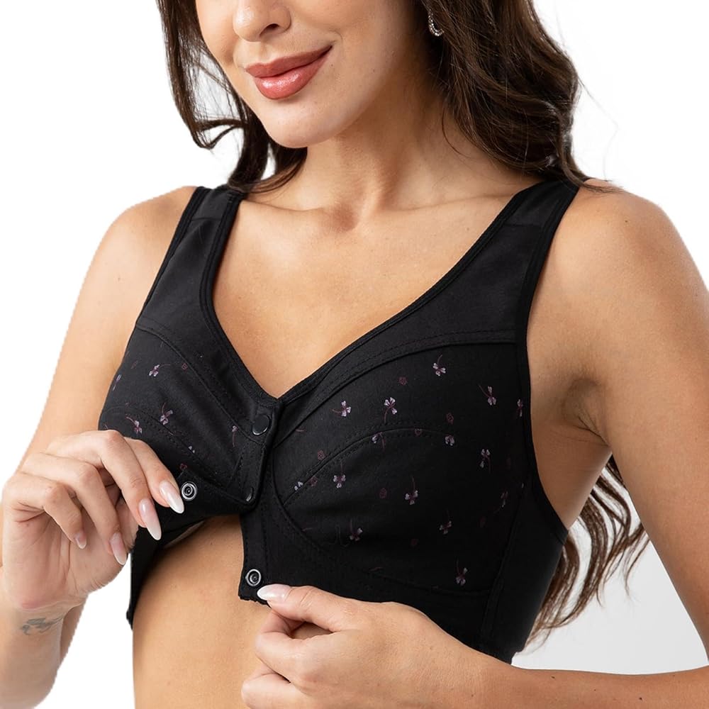 【EASY FRONT CLOSURE】CharmFront Snap-on Cotton Bra features a unique front closure design that makes it very easy to put on and take off. No more struggling with traditional bra clasps. Experience the convenience and comfort of this innovative front clasp design.