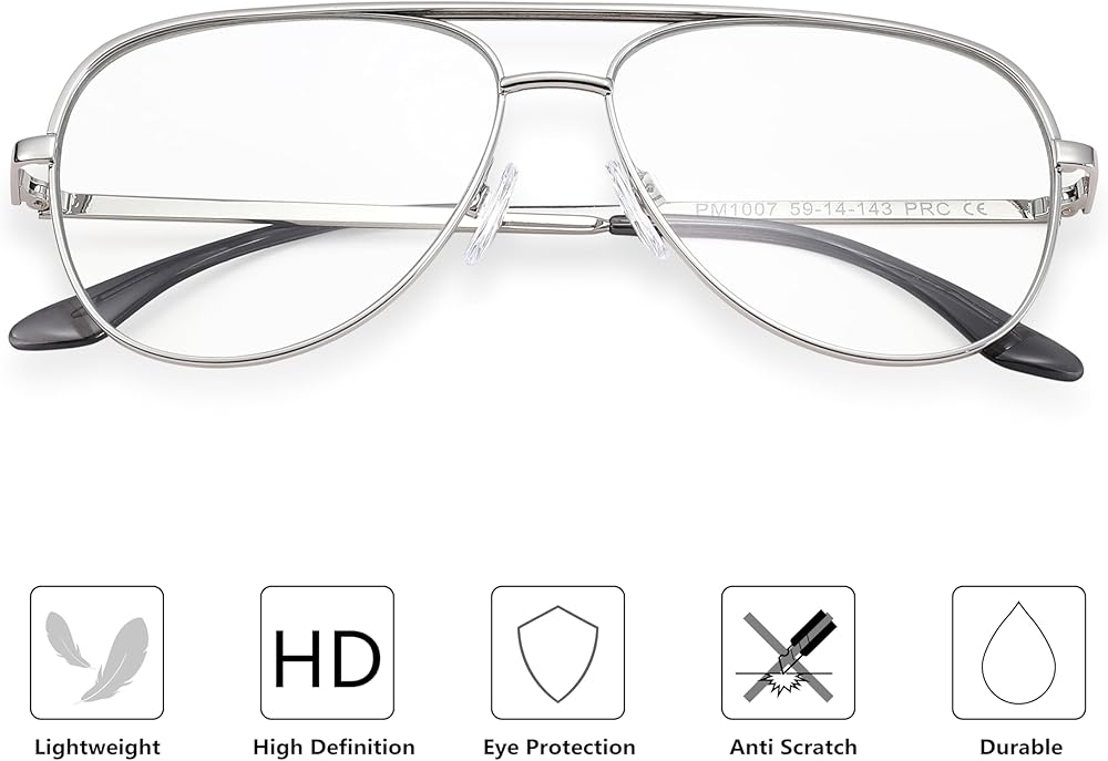 【High-Quality Materials】: Crafted from premium materials, these glasses ensure durability and long-lasting use. The lightweight metal frame is designed to withstand daily wear and tear, while the polycarbonate lenses offer excellent clarity and protection.