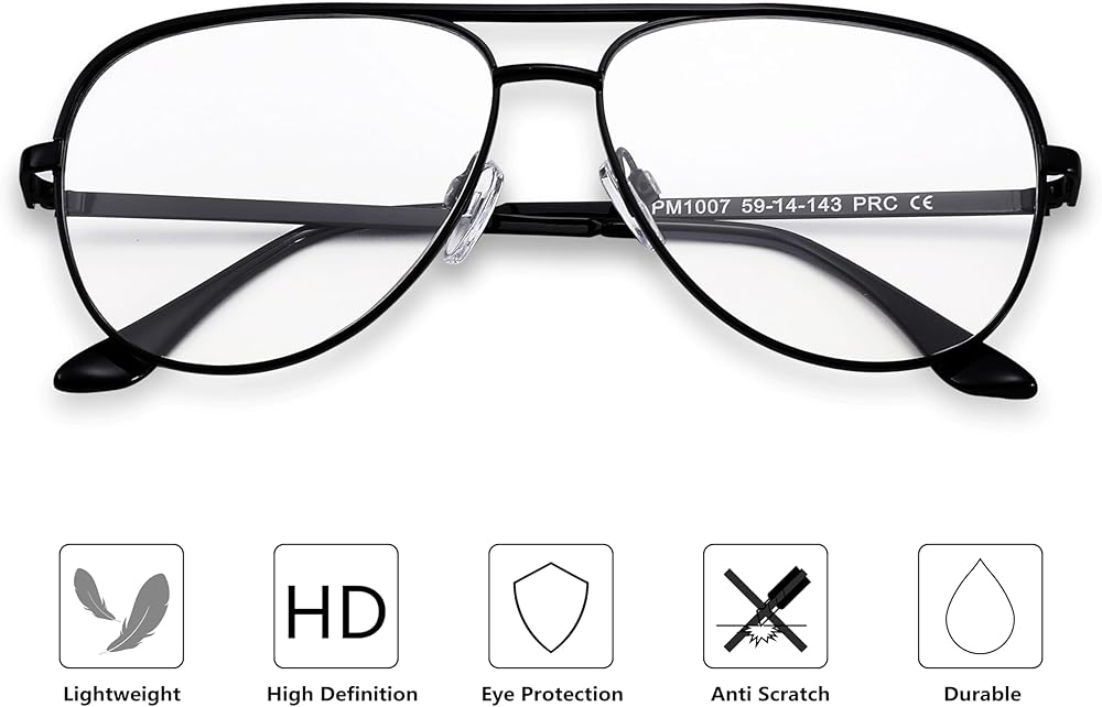 【Classic Aviator Design】: Our classic aviator glasses feature a timeless design that has been popular for decades. The iconic teardrop-shaped lenses and thin metal frame provide a stylish look suitable for both casual and formal occasions.