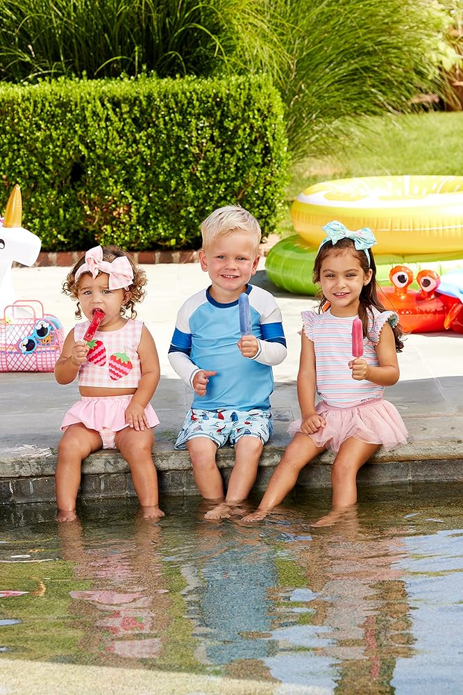 The nylon spandex rash guard help you little boy stay cool and comfortble this upcoming pool season!