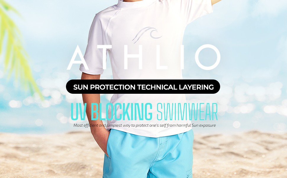 - ATHLIO Boys' Original Rashguard Series designed specifically for water sports and surfing.