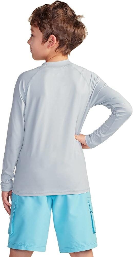 ATHLIO Boys' Long Sleeve Rash Guard Swimsuit, UV/SPF Water Beach Surf Swim Shirts, UPF 50+ Sun Protection Swimwear Top