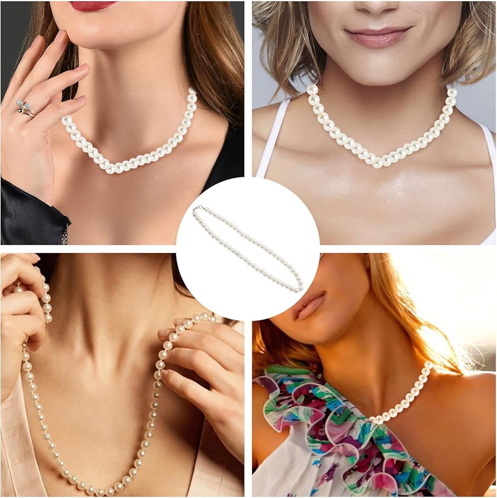 The package includes: a mesh headband, a string of imitation pearl necklaces, a delicate hairpin, and a pair of lace gloves.