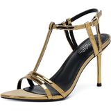 Gold Strappy Sandals for Women: Women's heeled sandals with two thin straps and an adjuatable ankle strap, use the simplest elements to show the most perfect design, shiny heels will make you charming in the crowd.