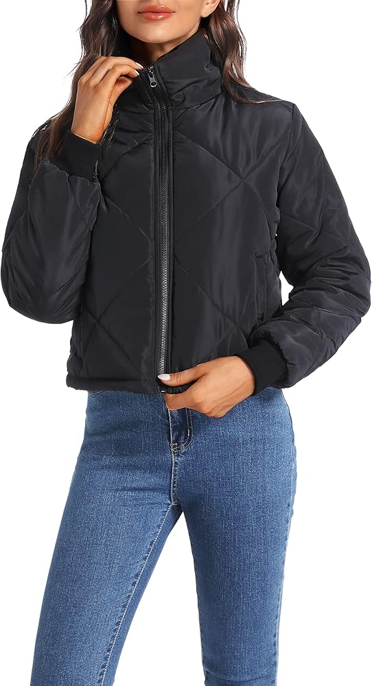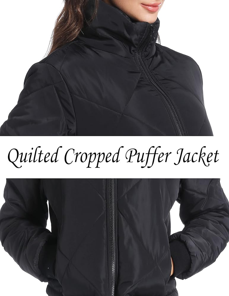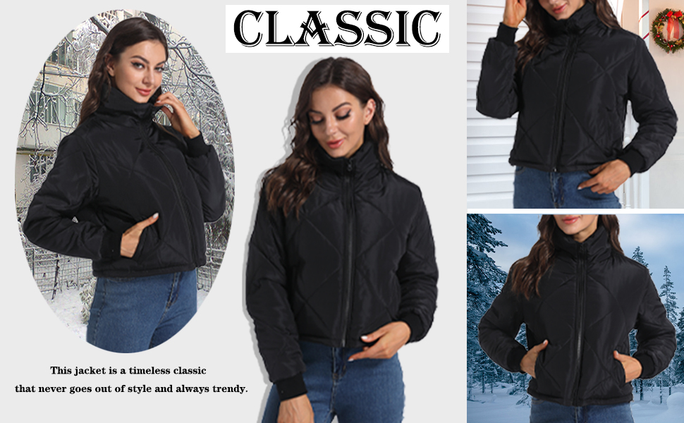 Design: fashion diamond quilted for classic trendy, 2 diagonal pockets can hold daily necessities and prevent items from falling out. The jacket is lightly padded with fabric lining, it's comfy without being baggy, but not tight fit.