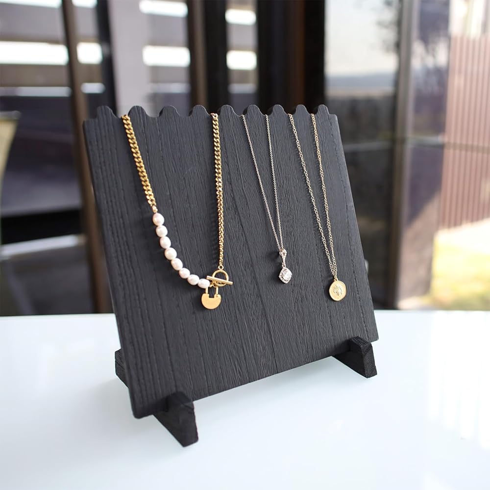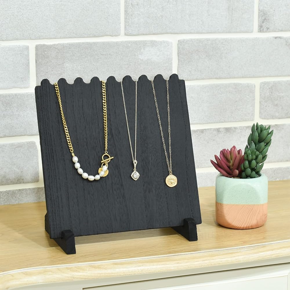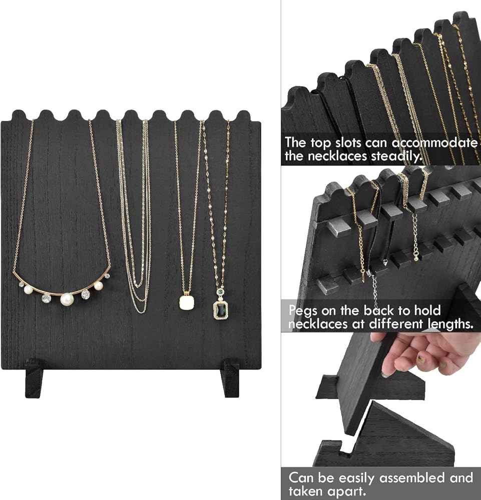 NECKLACE DISPLAY HOLDER: Made of lightweight and durable wood, designed in plank-style and the half-cross-joint construction allow the stand to be easily assembled and disassembled.