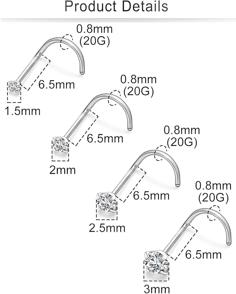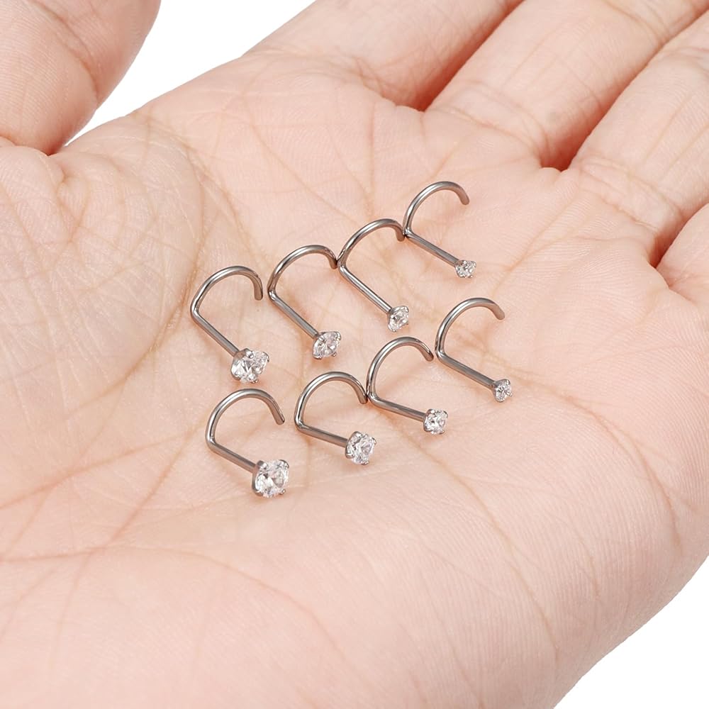 . Cisyozi 30 Pcs 18G Stainless Steel Hoop Nose Rings Screw Stud Rings Piercing Jewelry Colored CZ Inlaid