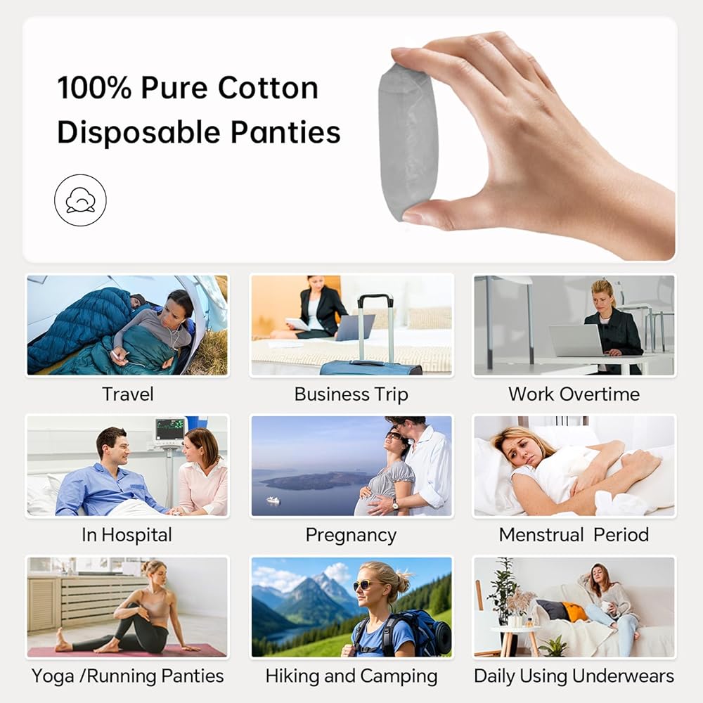 MULTIPLE USES :Women Disposable underwear are perfect for doing sports indoor or outdoor, travelling, hospital stays, postpartum, camping, hiking, working out, spa visits, or for everyday use.