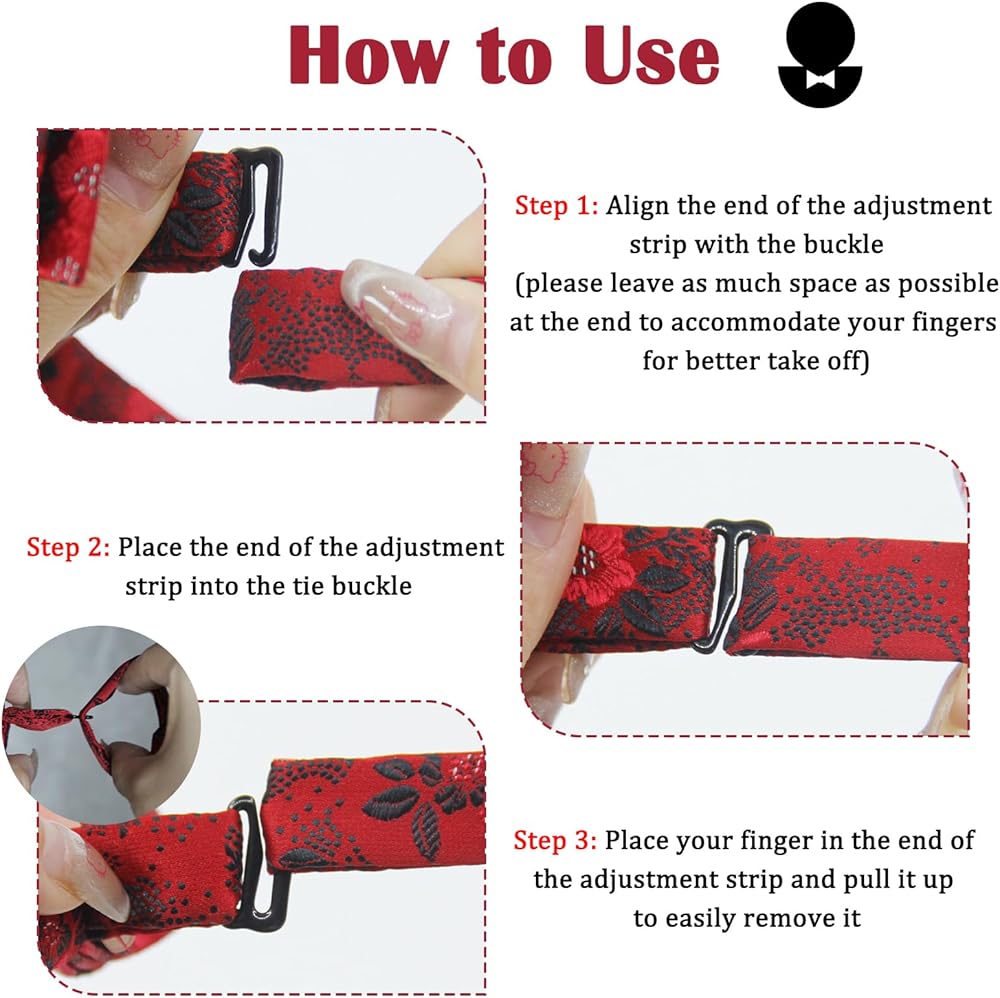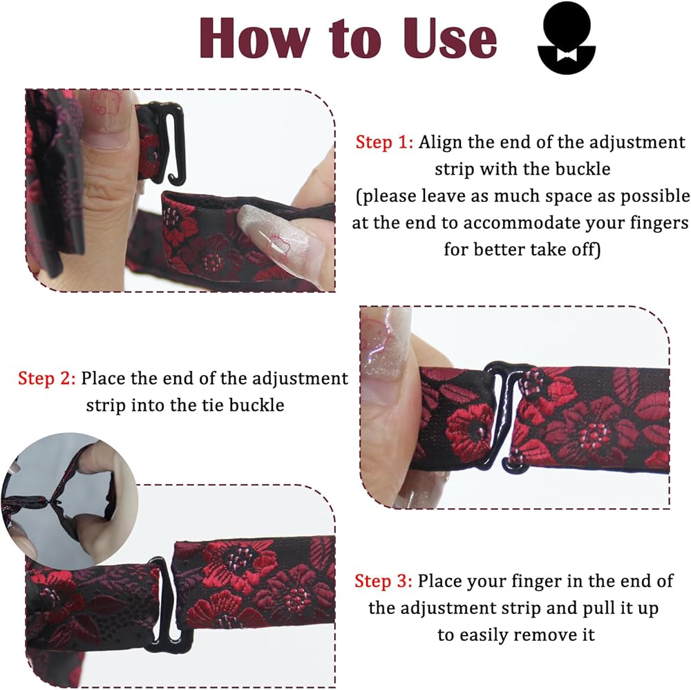 【INSTRUCTIONS】The usage method of this tie is very simple. You only need to put the strap into the buckle and pull the strap apart to wear it. When you need to remove it, use your fingers to withdraw the strap and it can be easily taken out. Don't rush and relax.