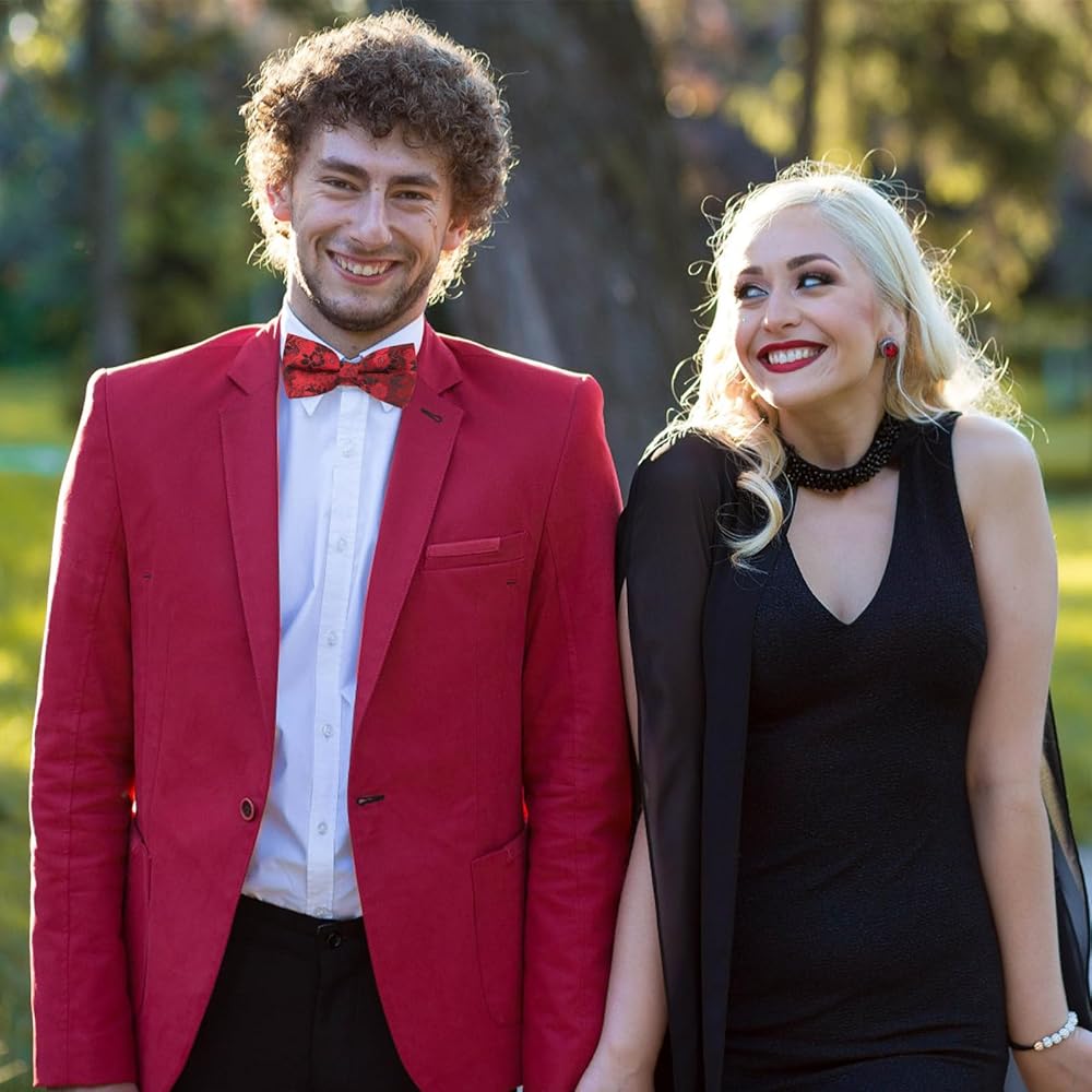 【ADJUSTABLE TIES for MEN】This red bowtie features an adjustable strap that accommodates a range of sizes, crafted from velvety polyester yarn to ensure top-notch quality and provide maximum comfort when wearing a necktie.