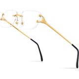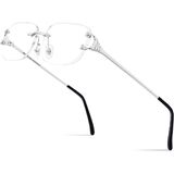HEPIDEM Vintage Style Rectangular Rimless Metal Eyeglasses for Men,New Frameless Zircon Diamonds Optical Glasses Frame