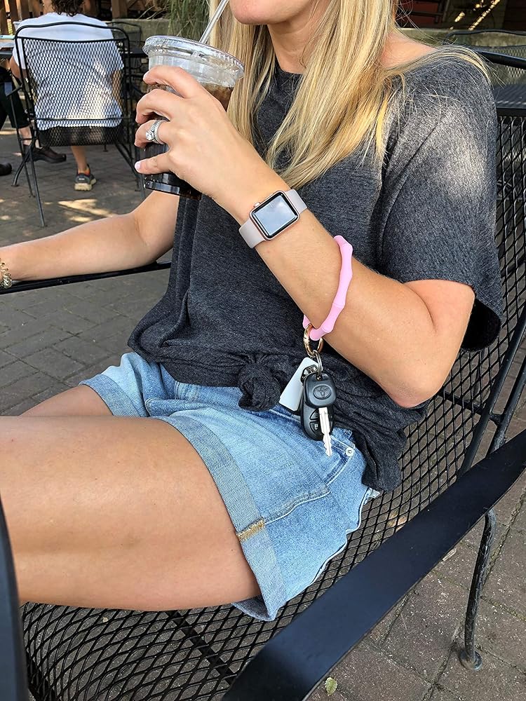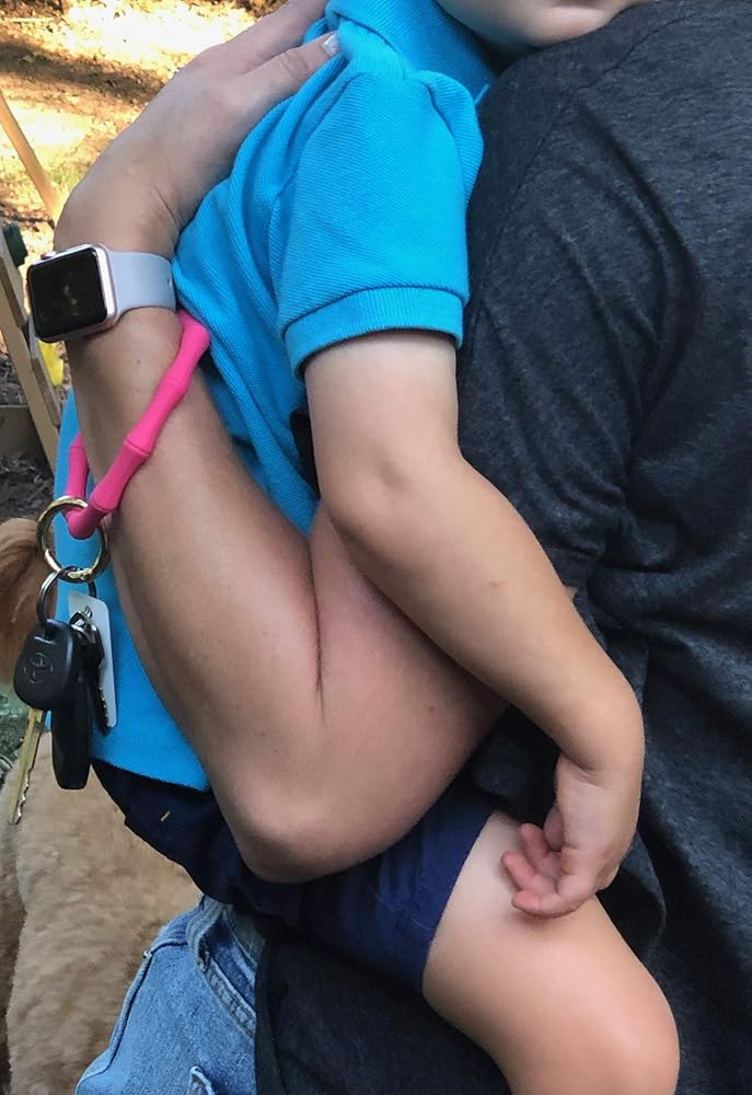 - MOM HACK! - Bamboo Bangle Keychain slips easily over wrist freeing up your hands to carry your child