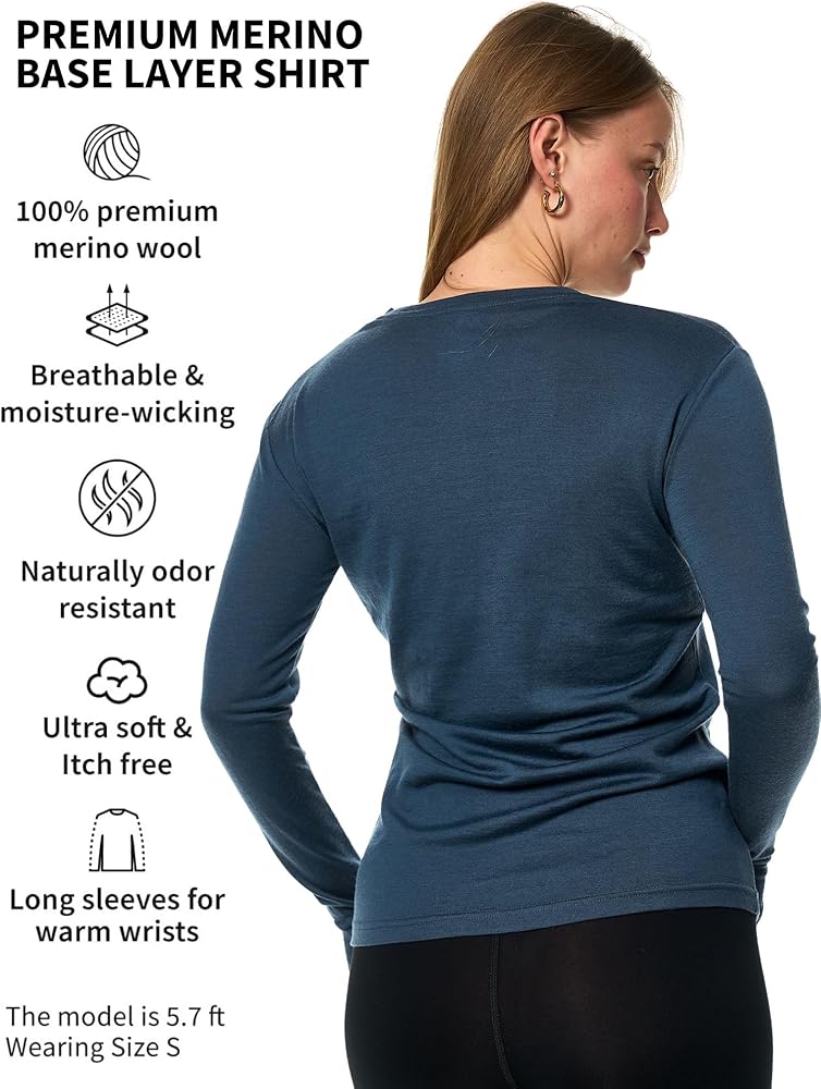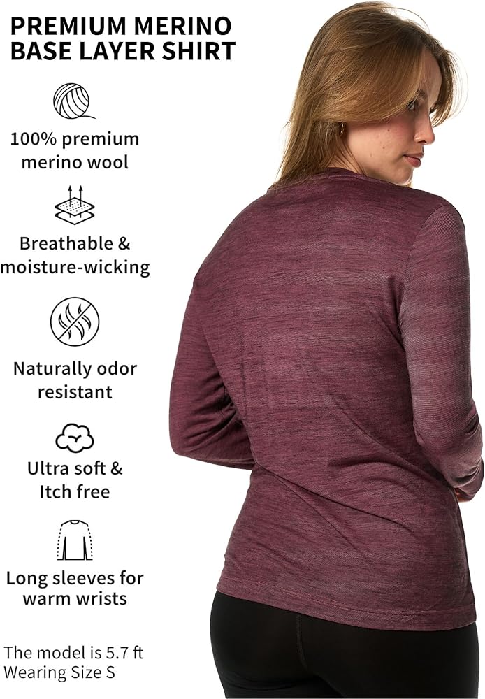MOISTURE WICKING & ODOR RESISTANT – Merino Base Layer Women natural wicking and odor-resistant properties allow it to absorb moisture better than any other fabric, keeping you dry and fresh.