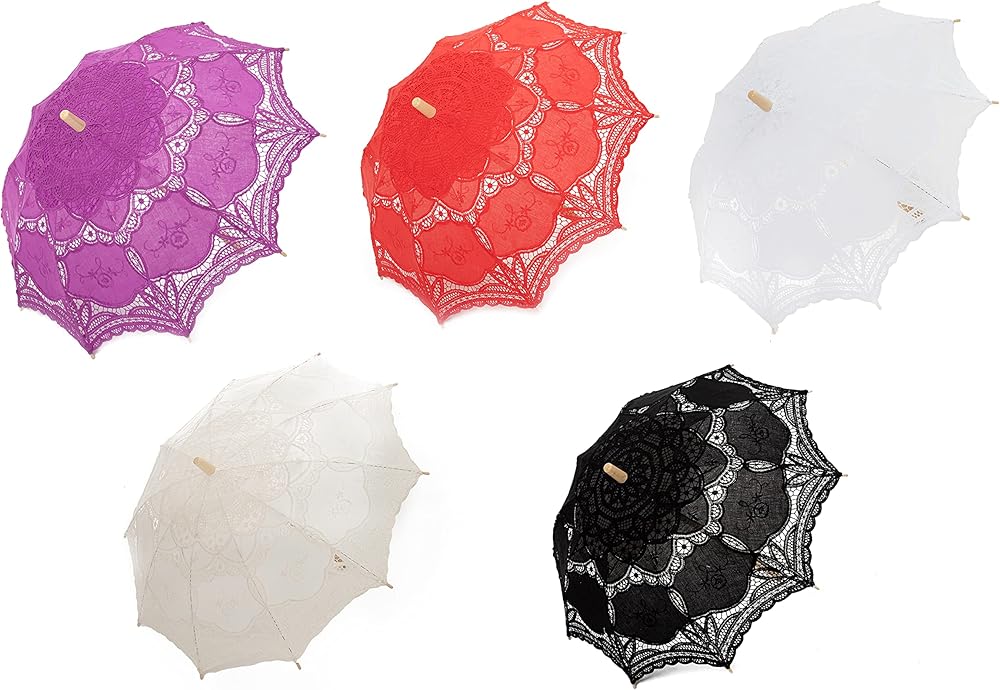 BEAUTIFUL AND PRACTICAL: This parasol features a beautiful and elegant lace design and is made of lightweight cotton with gorgeous embroidered details. Perfect for shielding from the sun and providing shade as well as a decorative piece in a garden, photoshoot, or any event! Also makes a great decor piece in any home, office, or retail space