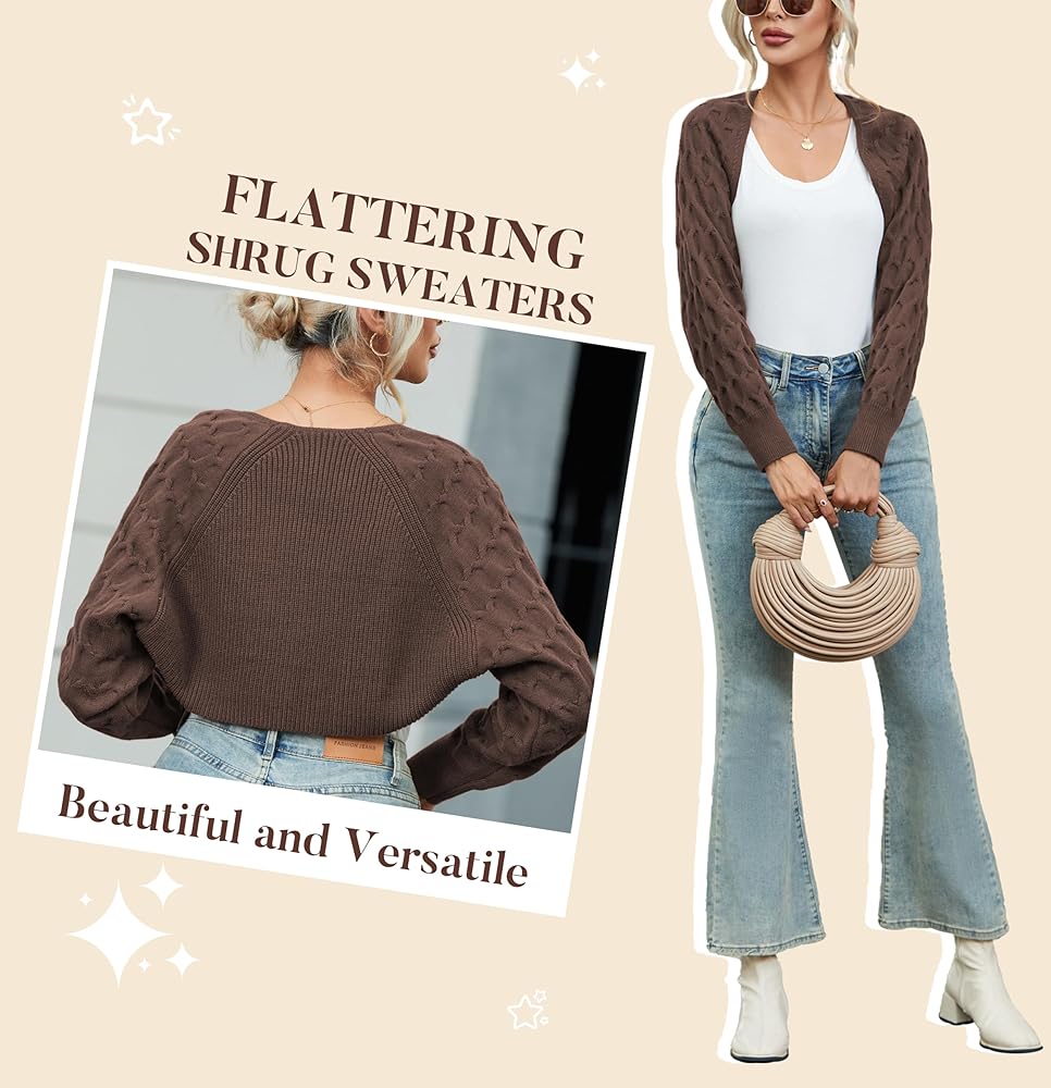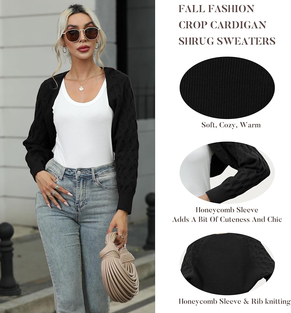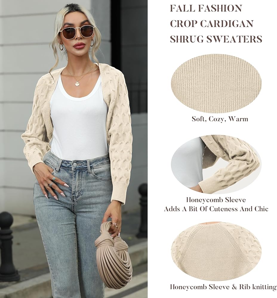 【Stylish Design】Cardigan Sweater Cropped Features In Honeycomb Sleeve, Adds A Bit Of Cuteness And Chic, Never Out Of Style. Women shrug Sweater With Plain Style, Easy To Match A Variety Of Trendy Looks.