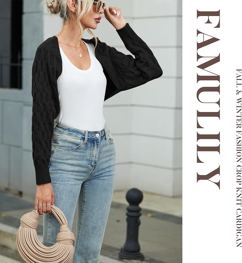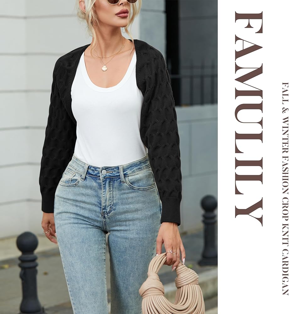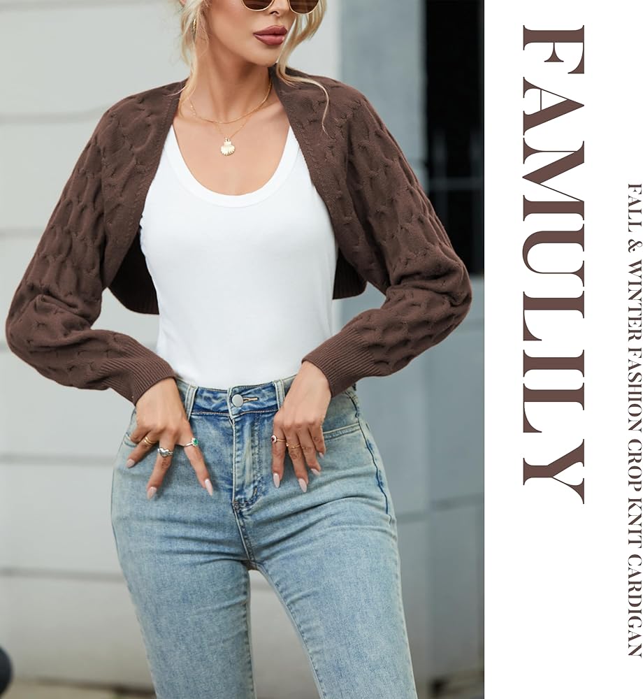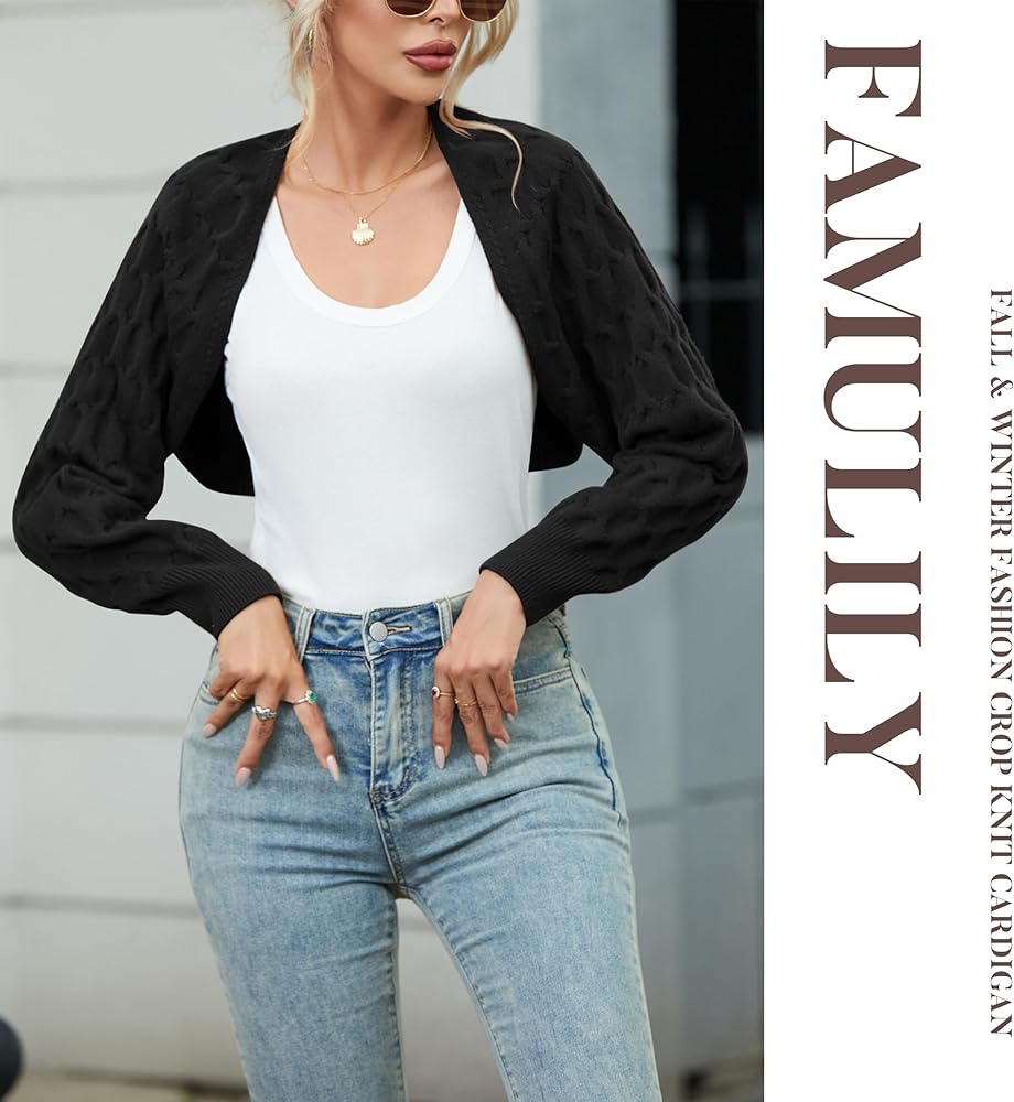 【Stylish Design】Cardigan Sweater Cropped Features In Honeycomb Sleeve, Adds A Bit Of Cuteness And Chic, Never Out Of Style. Women shrug Sweater With Plain Style, Easy To Match A Variety Of Trendy Looks.
