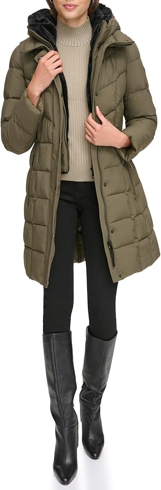 This DKNY Women's Outerwear Puffer is a Bib-Front Long Puffer Coat