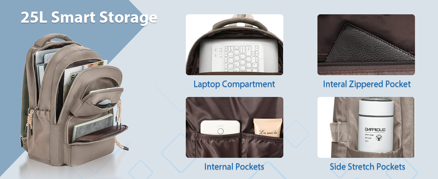Multipurpose: A tried-and-true classic backpack for work, travel, daily commute or outdoor activities. AUGUST 18 backpack with laptop compartment built to last. It would work for someone carrying small laptops and electronic devices, but if you have to carry multiple large textbooks, this is probably not the bookbag for you.
