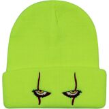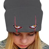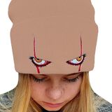 Embroidered Scary Eyes Knit Beanie Hat Dancing Clown Wool Watch Cap Stretch Cuff Hats for Men Women Kids